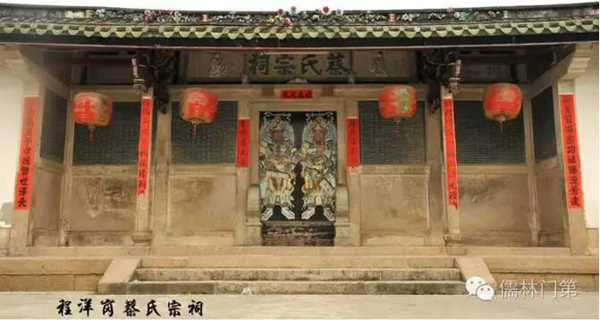 蔡氏大宗祠门口的对联写着:“珠玑宦裔,镐洛宗潢”