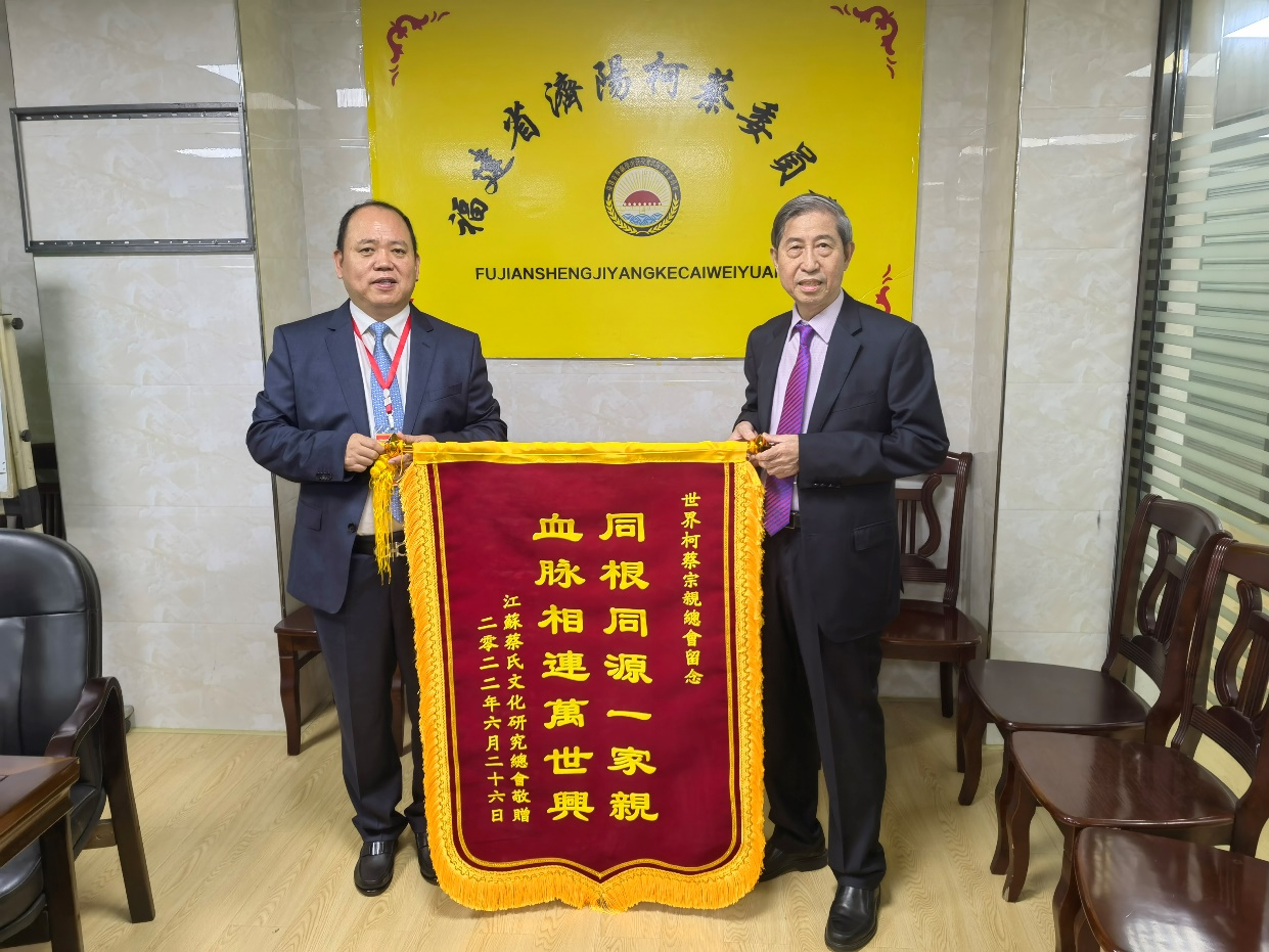 江苏蔡氏文化研究总会会长蔡东星敬赠世界柯蔡宗亲总会锦旗